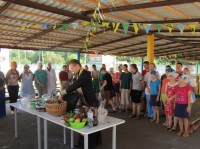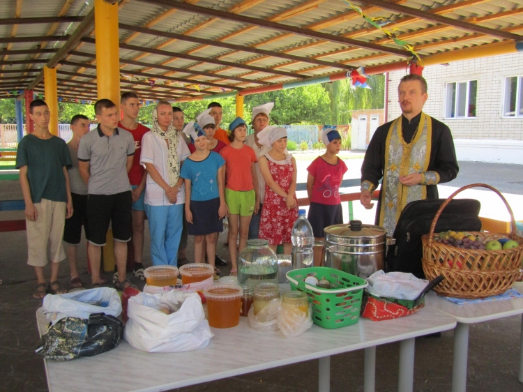 В этот праздник мероприятие посетил настоятель храма отец Андрей и провел освящение яблок и меда. Выступил с напутственной речью и благословил на добрые дела всех присутствующих.