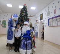Первоклассники Кропоткинского детского дома-интерната посетили новогодний утренник Казанской школы-интерната №7. Дети в карнавальных костюмах, с нетерпением ожидали веселого праздника. В гости к ребятам заглянули сказочные герои: баба Яга и Кощей бессмертный, которые заколдовали Деда Мороза и Снегурочку и завладели мешком с подарками. Расколдовать их детям помогли сказочные герои из сказок: кот Базилио и лиса Алиса, Марфушечка-душечка и старик Хоттабыч. На празднике ребята дружно пели, водили хороводы, танцевали.