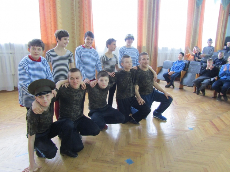В актовом зале детского дома-интерната – прошел праздник посвященный Дню защитника Отечества. Праздник прошел в игровой форме участниками конкурсов были 2 команды – 1-я девочек, 2-я мальчиков. Гостем праздника была бабушка, которая давала командам задания. Дети с большим удовольствием участвовали во всех эстафетах: «Уборка палубы», «Попади в цель», «Горячая картошка», «Обойди грозу и рифы».