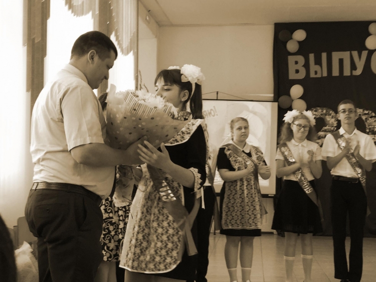 В конце линейки выпускники танцевали «Школьный вальс», прозвучал последний звонок. Наши ученики Дима Титов и Саша Лосьев подарили своей учительницы цветы.