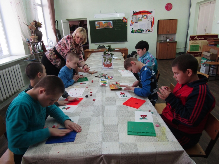 Воспитанники детского дома интерната посетили центр внешкольной работы объединение «Природа и фантазия». Тема занятия: «Веточка рябины» (лепка).