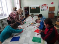 В начале занятия ребята повторили названия геометрических фигур. Затем детям было предложено рассмотреть и описать веточку рябины. После изучения рябины, ребята приступили к её лепке.