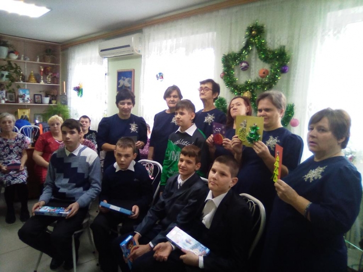 20.12.2019г. Акция «Согревая сердца» В Новый год принято дарить друг другу подарки. А подарки, сделанные своими руками, от всего сердца, особенно приятны, т.к они согреты любовью. В преддверии Нового года стартовала Всероссийская акция «Согревая сердца». Воспитанники «Кропоткинского детского дома - интерната» приняли активное участие в этой акции. Совместно с воспитателями они изготовили поздравительные открытки, подписанные с пожеланиями в Новом году для пожилых людей и инвалидов «Кропоткинского психоневрологического интерната». Доставка и вручение новогодних открыток проходила непосредственно с выездом воспитанников детского дома-интерната и персональным вручением с концертными номерами. Воспитанники читали стихотворения и поздравляли опекаемых с наступающим Новым годом. Пожилые люди и инвалиды «Кропоткинского психоневрологического интерната» тоже приготовили концертную программу и сладкие призы. Все участники получили огромное удовольствие и положительные эмоции от проведённого мероприятия. Данная акция проведена при участии директора «Кропоткинского детского дома-интерната» В.С. Давыдова и директора «Кропоткинского психоневрологического интерната» А.В. Сафронова.