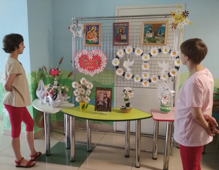 В связи с празднованием Всероссийского Дня семьи, любви и верности в честь благоверных Петра и Февронии Муромских, продолжая практику знакомства детей с традициями православной культуры, в детском доме-интернате был проведен: «Час общения по ознакомлению детей с легендой о благоверных князе Петре и княгине Февронии Муромских», прозвучало много стихов, пословиц о семье, дружбе, верности. В этот праздничный день в каждой группе проходили мастер-классы, творческие мастерские по изготовлению ромашек - символа семейного праздника «Дня семьи, любви и верности». Ромашки изготавливали из бумаги, бросового и природного материала. Все творческие работы участвовали в выставке детских поделок. На прогулке был проведён конкурс рисунков на асфальте «Символ праздника – ромашка». Этот красивый и добрый праздник был не только интересным, но и познавательным, он подарил всем массу положительных эмоций и желание дарить любовь и заботу своим близким!