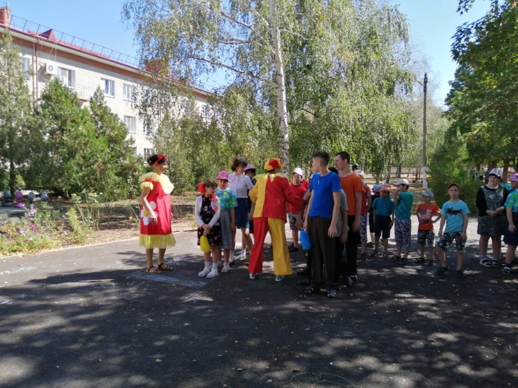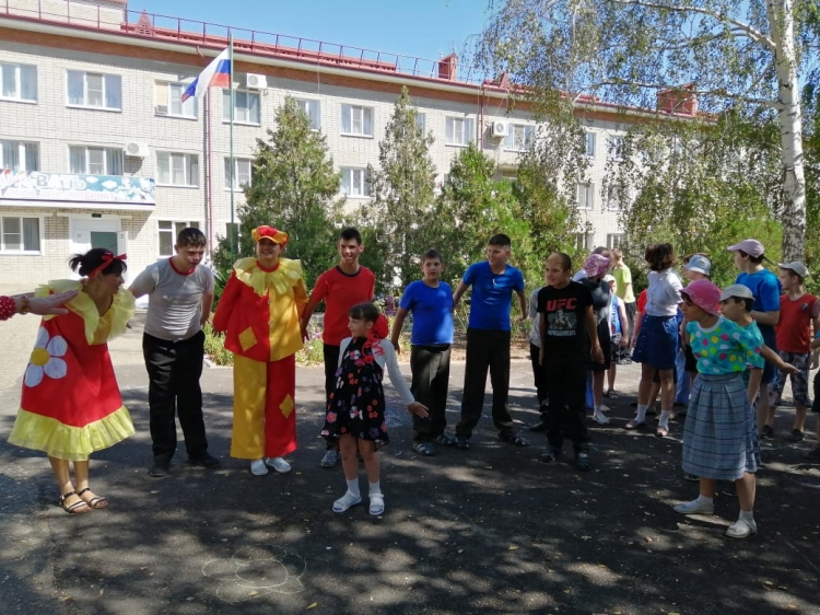 01.09.2020г. Игровая программа: «День знаний». По традиции наши ребята отправились на встречу со школой красивыми, нарядными и с праздничным настроением. ГБОУ КК специальная (коррекционная) школа - интернат №7 станицы Казанской вновь распахнула двери, чтобы дать старт новому учебному году. Первые «Уроки знаний» состоялись в Казанской школе - интернат, где мальчишки и девчонки встретились с одноклассниками, классными руководителями и педагогами. В этот день звучало много пожеланий от педагогов ученикам. Подрастающему поколению пожелали успешной учебы, любознательности, интересной жизни в новом учебном году! На площадке детского дома-интерната очень весело и интересно прошло развлечение «День знаний». Дети вместе с воспитателями, клоуном Клёпой, с Машей и медведем, решали веселые задачки, участвовали в весёлых конкурсах, пели песни о школе, читали стихи. День знаний для ребят прошел празднично, необычно, он был наполнен улыбками, позитивными эмоциями, хорошим настроение, ярким солнцем.
