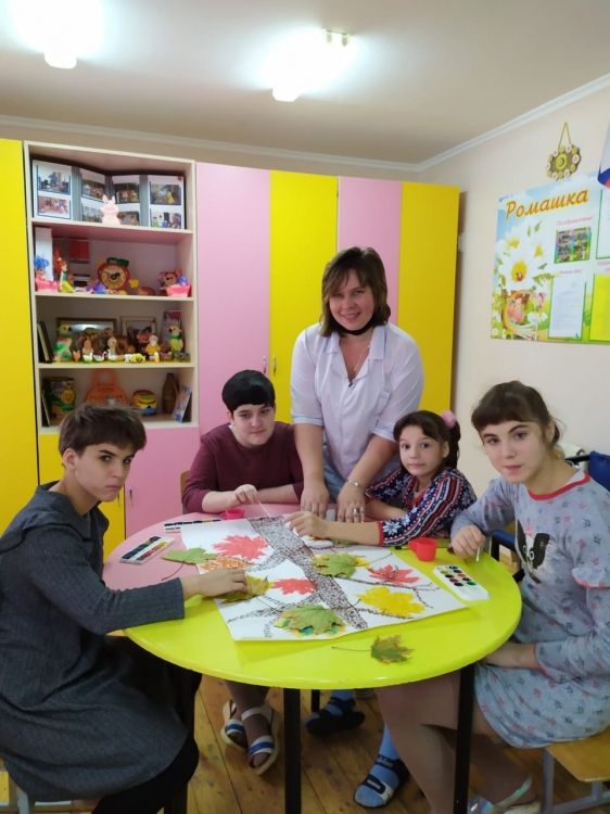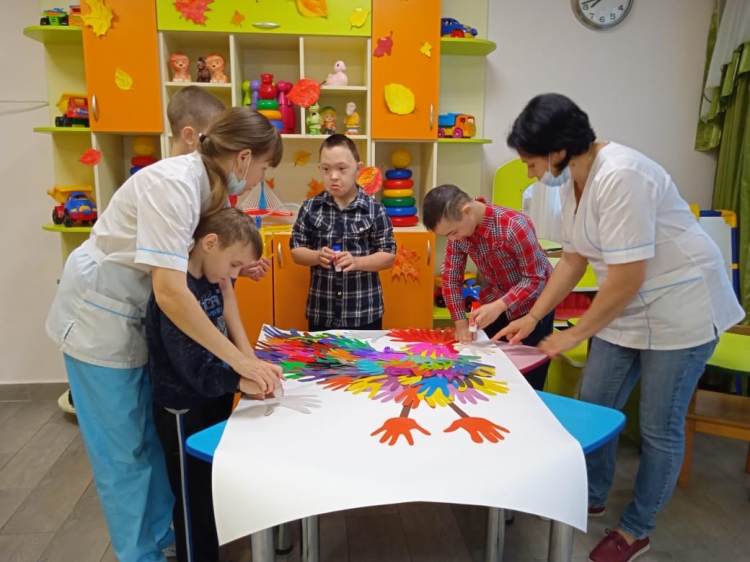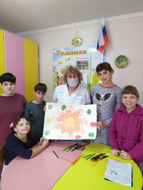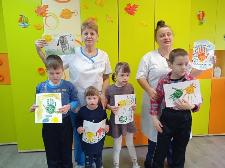 В первый день осенних каникул в детском доме-интернате началась тематическая неделя: «Разноцветные ладошки».