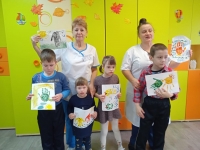 В течение недели ребята знакомились с различными техниками нетрадиционного рисования, аппликации, лепки. В ход шли щётки, губки, палочки и другие предметы. Дети рисовали ладошками, пальцами, ватными палочками. Девочки рисовали осенний лес и его жителей, грациозных лебедей и, конечно же, цветы. Мальчики с воспитателями воплотили свою задумку и сделали петушка из разноцветных ладошек. Маленькие художники с помощью воспитателей нарисовали обитателей земли и океанов.