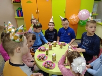 Ребята веселились от души, у всех было замечательное настроение, радость на лицах! А наши именинники - самые счастливые и довольные! День рождение было отмечено вкусным чаепитием с конфетами, пирожными! И конечно подарками!