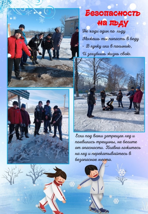 Отчёт о проведённых мероприятиях в рамках Всероссийской акции «Безопасность детства» в зимний период в ГКУСОКК «Кропоткинский детский дом-интернат» Безопасность детей — это самая важная задача для родителей, педагогов и всех взрослых, которые их окружают. К сожалению, опасностей, которые могут нанести вред здоровью и даже представлять угрозу для жизни, в окружающем мире очень много. Поэтому надо не только усиленно оберегать и защищать ребёнка, но и учить его безопасному поведению в различных ситуациях как в доме, так и вне его. Акция направлена на проведение мероприятий по профилактике чрезвычайных происшествий с несовершеннолетними, их гибели и травмирования. С целью ознакомления воспитанников с правилами и нормами безопасного поведения для приобретения социального опыта, а также формирования ценностей здорового образа жизни, осознанного отношения к своему здоровью в ГКУСОКК «Кропоткинский ДДИ» проведены мероприятия, направленные на реализацию следующих задач: 1) знакомить воспитанников с опасными ситуациями, которые могут возникнуть во дворе, на улице, в общественном транспорте; с правила безопасного поведения во время игр; с правилами поведения с незнакомыми людьми; 2) формировать чувство ответственности за свои поступки и личное отношение к соблюдению и нарушению правил пожарной безопасности; 3) разъяснить правила поведения, которые воспитанники должны выполнять неукоснительно, так как от этого зависит их здоровье и безопасность; 4) закреплять навыки практических действий при учебной эвакуации по причине возникновения пожара; 5) воспитывать чувство взаимопомощи к окружающим, бережное отношение к своей жизни; 6) приобщать родителей воспитанников к проведению совместных мероприятий, направленных на формирование у несовершеннолетних основ безопасности жизнедеятельности.