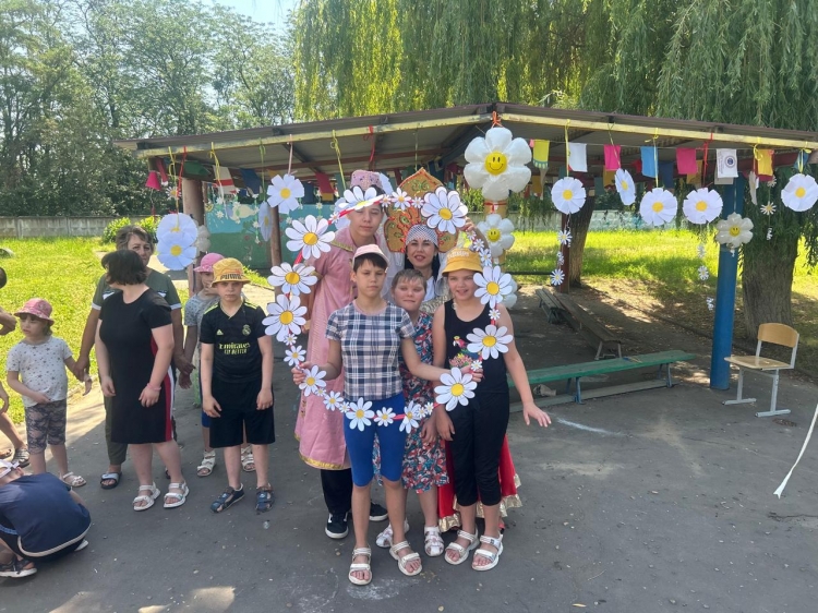 Мы заранее подготовили фотозону "Ромашковое настроение", дети с большим удовольствием делали фото получили заряд хорошего настроения на целый день. Педагоги не смогли пройти мимо фотозоны и не сделать фото, ведь мы тоже одна большая дружная семья. Педагоги познакомили детей с историей возникновения этого праздника, провели беседы: «Что я знаю о маме и папе», «Моя дружная семья», «Ромашка – символ семьи, любви и верности». У нас прошел спортивно музыкальный праздник: "В гостях у Василисы!" где дети принимали активное участие. Развлечение получилось яркое, доброе и радостное, и оставило у детей массу положительных эмоций. А в душах наших воспитанников осталась самая важная мысль, что счастье заключается в дружной, надёжной и крепкой Семье! А самое интересное занятие, которое увлекло детей – это изготовление символа праздника – ромашки. Дети верят, что ромашка волшебная и будет исполнять желания.