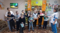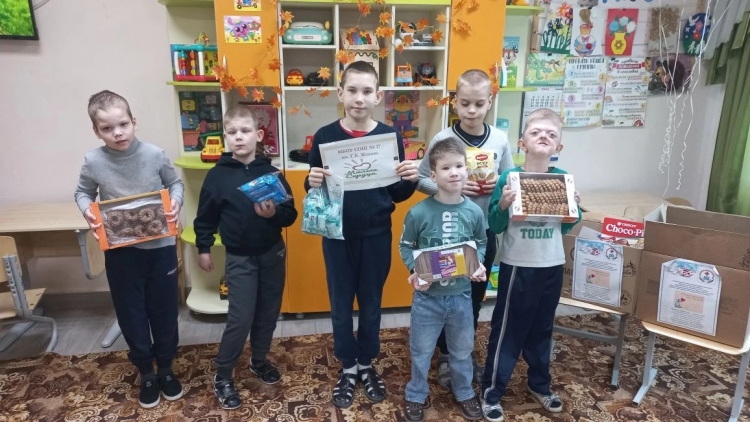 Для ребят был организован очень интересный и познавательный мастер класс. И приятным сюрпризом для всех ребят стали сладкие подарки. А ещё коллектив АО «Тандер» порадовал ребят привезя так необходимую бытовую химию и средства личной гигиены.»