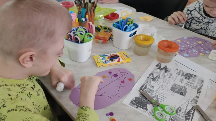 Мастер класс по созданию панно с изображением зимнего леса. Адаптивное занятие, сочетающее сенсорное развитие, творчество и коррекционные задачи, где используются нетрадиционные техники рисования, аппликации, обрывная аппликация лепки, вырезания ножницами. Создание панно, коллективная работа детей чтобы помочь воспитанникам ощутить красоту Русской зимы. Развить мелкую моторику, речь, внимание и воображение, с акцентом на индивидуальные потребности каждого ребенка.