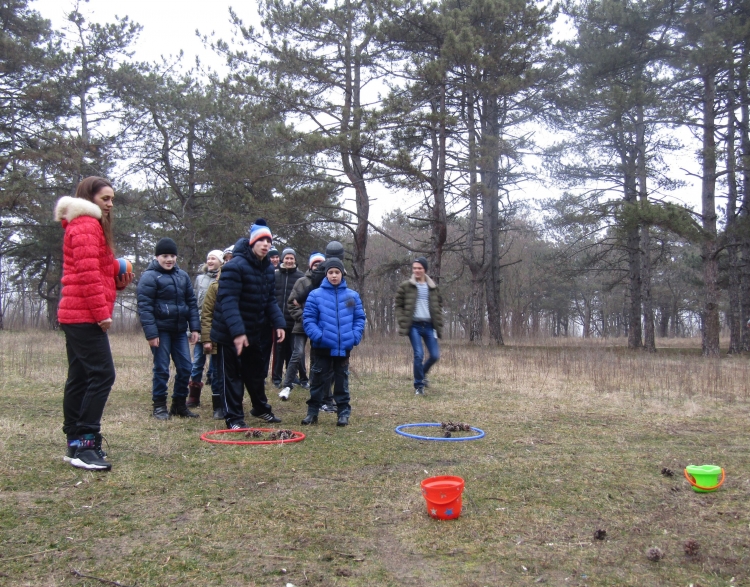 Начались зимние старты с разминки и пробежки по поляне в сосновом бору. Следующим этапом ребята весело и с большим интересом проходили эстафеты: «Собери сосновые шишки», «Попади в цель», «Кто быстрее».