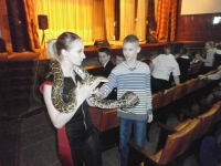 Началось с веселых и смешных клоунов «Вовика» и «Андрюшки», которые смешили и играли со зрителями всю цирковую программу между номерами других артистов. Ребята посмотрели цирковое представление на одном дыхании – акробаты-каскадеры на батуте и лестнице, моноцикл на свободной проволоке, дрессированные животные: нильский крокодил, два той-пуделя, тигровый питон и хорек «Пусик» подарили нашим ребятам атмосферу волшебства и настоящего чуда.