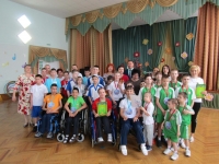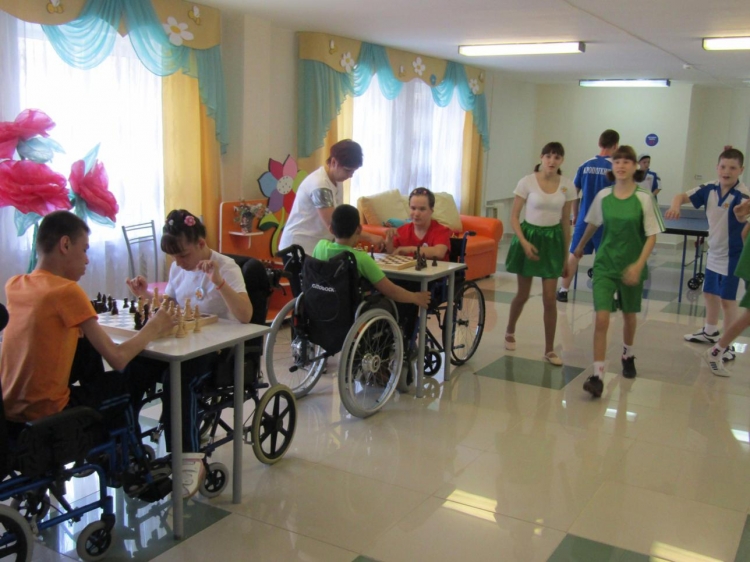В актовом зале учреждения проведена краевая специальная спартакиада среди детей-инвалидов, проживающих в детских домах интернатах для умственно отсталых детей Краснодарского края «Веселые старты». В соревнованиях участвовали команды – Отрадненского и Кропоткинского детских домов-интернатов. Спартакиада прошли в соответствии с утвержденным графиком, в виде соревнований: - «Веселые старты»; - Настольный теннис; - Турниры по шахматам и шашкам. Для юных спортсменов из детских домов-интернатов участие в подобных соревнованиях значимое событие. Ребята «Отрадненского ДДИ» побывали за стенами своего интерната – это и общение с другими детьми, и проявление спортивных достижений. Сила спорта улучшает здоровье, повышает уверенность в себе! Специальная спартакиада – это крупнейшая программа по воплощению мечты, когда дети с ограниченными возможностями могут реализовать свой потенциал и получать признание не только как спортсмены, но и как уважаемые члены общества. В 10.00 – состоялось открытие, представление судей и участников спартакиады. Открытие спартакиады началось, с торжественного построения, выноса знамя и «Олимпийского огня». Под звуки гимна Российской Федерации и Кубани участников, гостей и болельщиков приветствовали члены судейской коллегии: Председатель: исполняющий обязанности директора ГКУСОКК «Кропоткинский ДДИ» В.С. Давыдов. Члены: - консультант отдела организации деятельности домов-интернатов Умарова М.В.; - руководитель управления социальной защиты населения в Кавказском районе Т.Д. Демченко; - директор «Отрадненского детского дома-интерната Т.Г. Калюжная. Начиная спортивные соревнования, каждая команда представила свое название и девиз. Впервые в этом году в спартакиаду были включены новые виды спорта: настольный теннис и турнир по шахматам. Шахматы – это старинная увлекательная игра, помогающая в развитии памяти и мышления. Следует отметить, что в соревнованиях участвовали дети отделения «Милосердия», они проявили бойцовский характер и волю к победе. В упорной борьбе в шахматном турнире, среди шести участников, победителем стала Епифанова Мария. Шашки – это и спорт, и наука, и искусство в одной игре, доставляющие много радости и удовольствия, воспитывает дух партнерства, товарищества и соперничества. Острый накал борьбы был на шашечном турнире, ребята с азартом боролись за призовые места. Среди шести игроков лучшим стала Пичкунова Ирина. В соревнованиях по настольному теннису приняли участие ребята «Кропоткинского детского дома-интерната»: Иконников Андрей, Жук Анатолий, Савинков Евгений. По итогам соревнований лучший результат показал – Жук Анатолий. В соревнованиях «Веселые старты» команды Отрадненского и Кропоткинского детских домов интернатов состязались в увлекательных эстафетах. Юные спортсмены были настроены на упорную борьбу и показали ее в ходе прохождения непростых этапов соревнования. Спортивный задор и желание добиться победы для своей команды старался каждый участник. Всем хотелось изо всех сил быть первыми, с теннисными шариками, обручами, мячами ребята управлялись лихо. Скорость, быстрота, были их незаменимыми спутниками. А такие эстафеты «Пингвины с мячом», «Полет Бабы яги» развивает в ребятах не только спортивные навыки, но и умение фантазировать, перевоплощаться в персон
